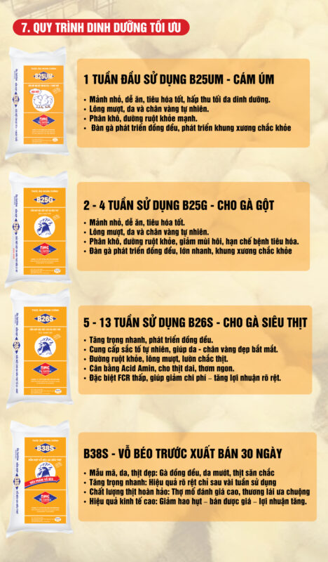 Nhờ áp dụng khẩu phần B26S hoặc B22 trong giai đoạn này, đàn gà Ri sẽ đạt tốc độ tăng trưởng vượt trội, cơ thịt săn chắc, ngoại hình đẹp và hiệu quả kinh tế tối đa cho bà con.