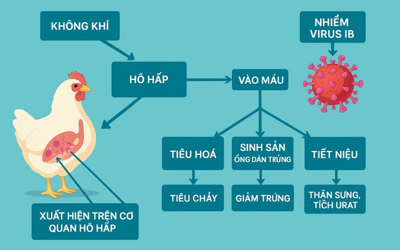 Nguyên nhân và con đường lây lan của bệnh viêm phế quản truyền nhiễm IB ở gà
