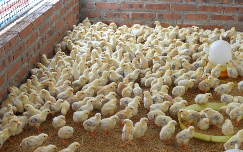 - Mật độ nuôi tích hợp của gà con từ 1-3 ngày tuổi khoảng 70 – 90 con/m2