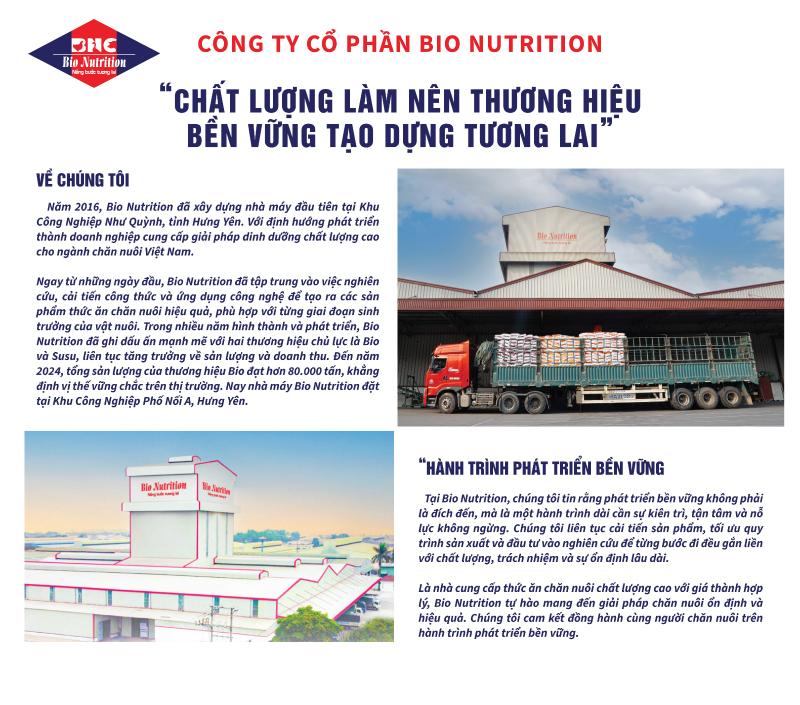 Trong số các thương hiệu hiện nay, Bio Nutrition là công ty được nhiều hộ chăn nuôi đánh giá cao nhờ chất lượng sản phẩm ổn định, hiệu quả rõ ràng và dịch vụ kỹ thuật tận tình.